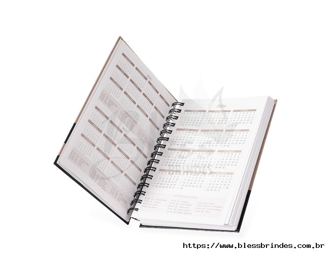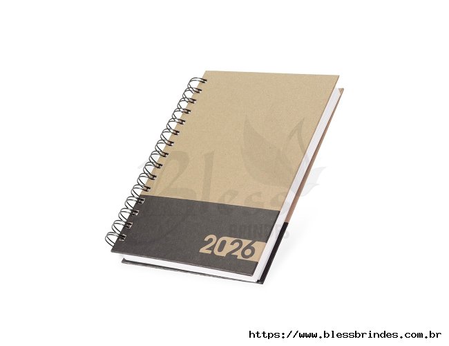 Agenda diária 2026 com espiral, material kraft, capa dura. Contém páginas de dados pessoais, calendário 2024 a 2026, orçamento pessoal, anotações, mapa do Brasil, mapa da América do Sul, mapa da América do Norte, mapa Mundi, mapa da Europa, mapa da África, mapa da Ásia, índice telefônico e planejamento.