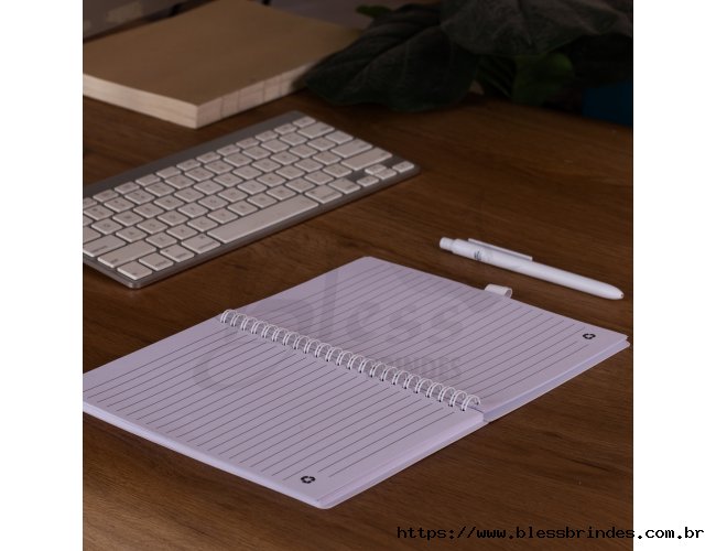Descrição: Kit escritório antibacteriano, contém: Caderno de anotações com suporte para caneta, e caneta plástica.