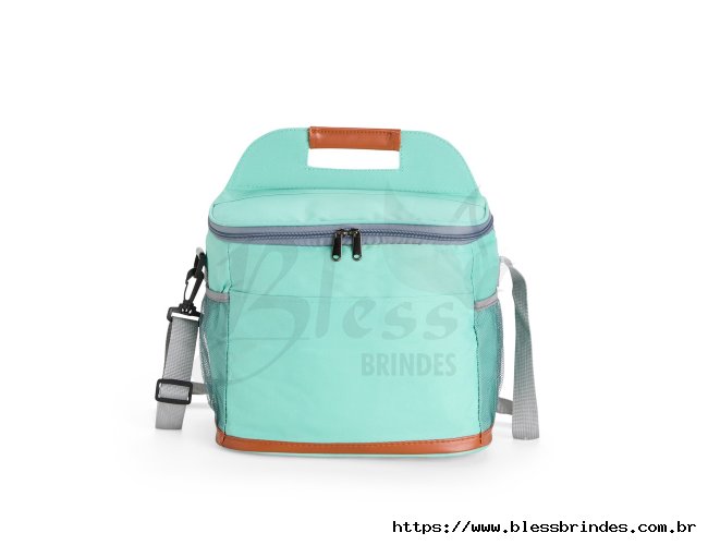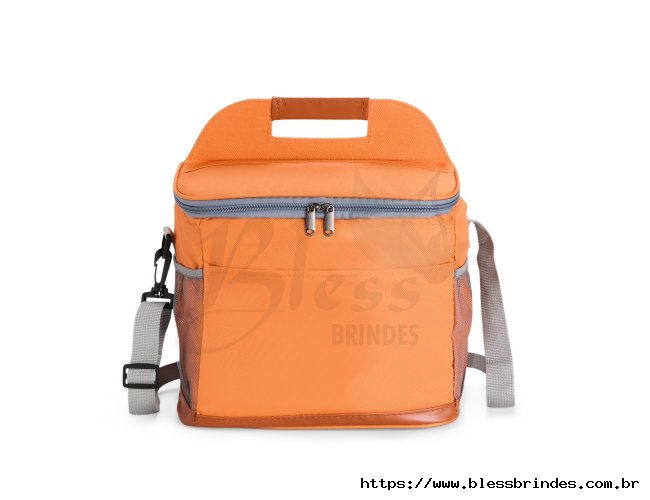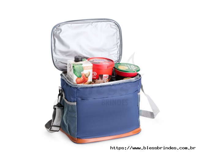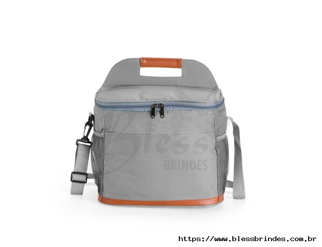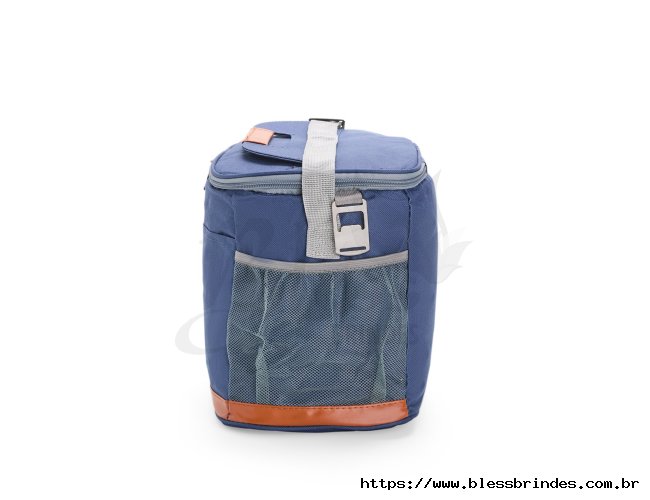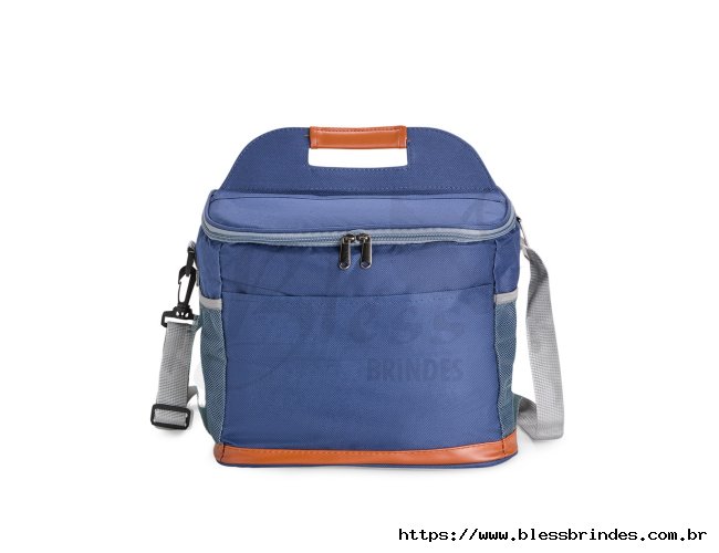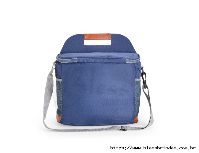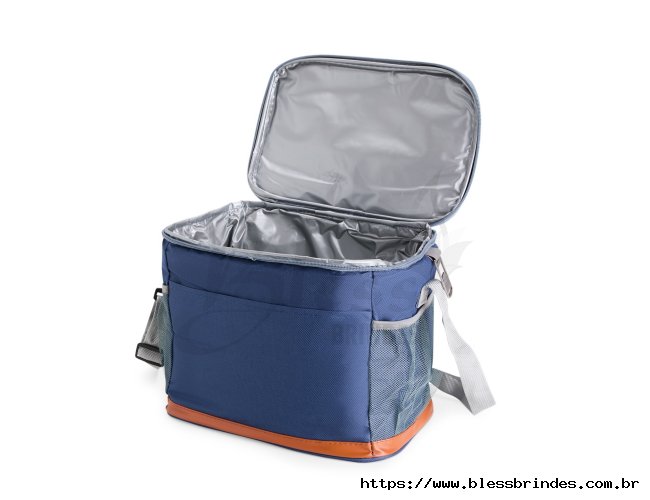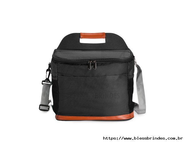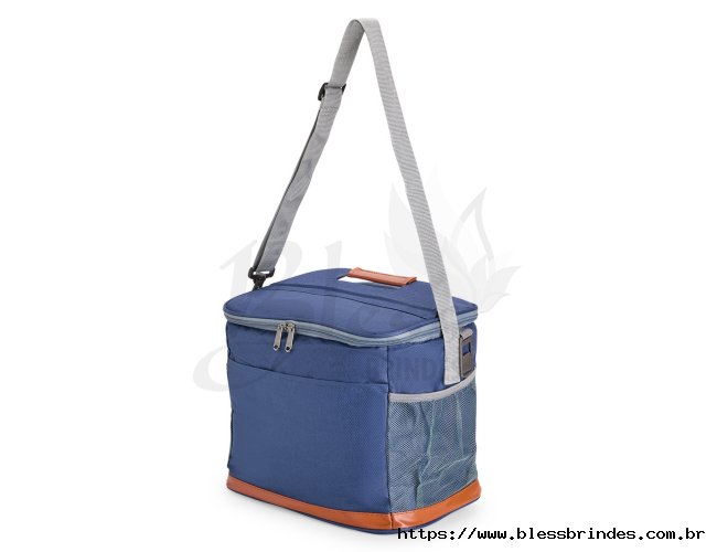 Bolsa térmica confeccionada em Oxford impermeável, com detalhes em couro sintético, fechamento em zíper e capacidade de até 11 litros. Possui revestimento interno em PEVA, que proporciona a conservação de temperatura de alimentos e bebidas por mais tempo. Conta com bolso frontal aberto, dois laterais em tela de nylon com elástico, alça de mão, alça transversal ajustável e abridor de garrafas em inox fixado em uma das laterais.