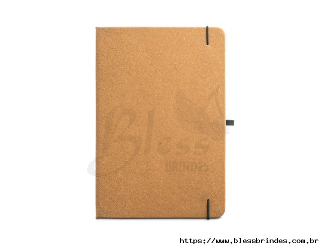 Caderno A5 com capa dura em couro reciclado com 96 folhas pautadas cor marfim, em papel proveniente de gestão florestal sustentável. Suporte para esferográfica (não inclusa), elástico e fita separadora em preto. Contém bolso interior. Fornecido em envelope preto de cartão. 140 x 210 mm
