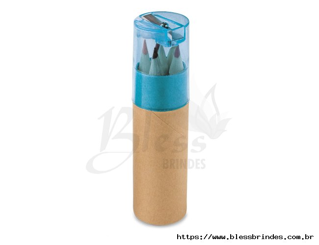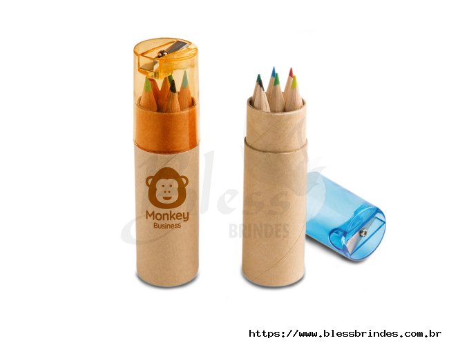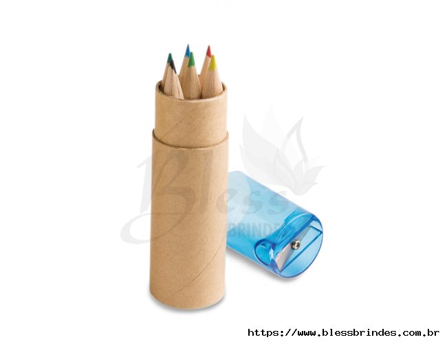 Caixa cilíndrica em cartão com 6 mini lápis de cor. Incluso apontador. ø26 x 106 mm