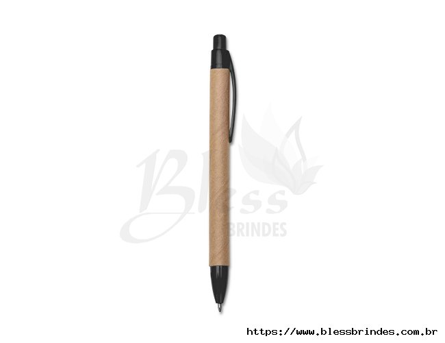 Caneta ecológica de papelão com detalhes coloridos, o clip pode facilmente ser retirado para personalização no corpo da caneta. Clip e ponteira plástica, aciona por clique.
