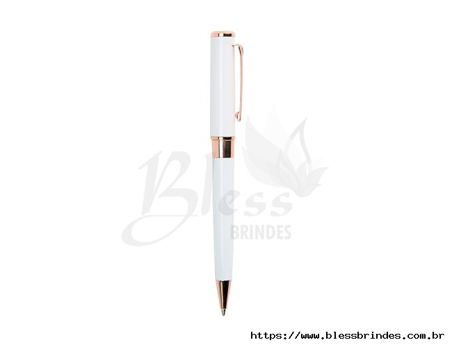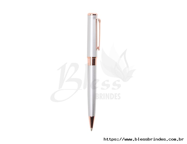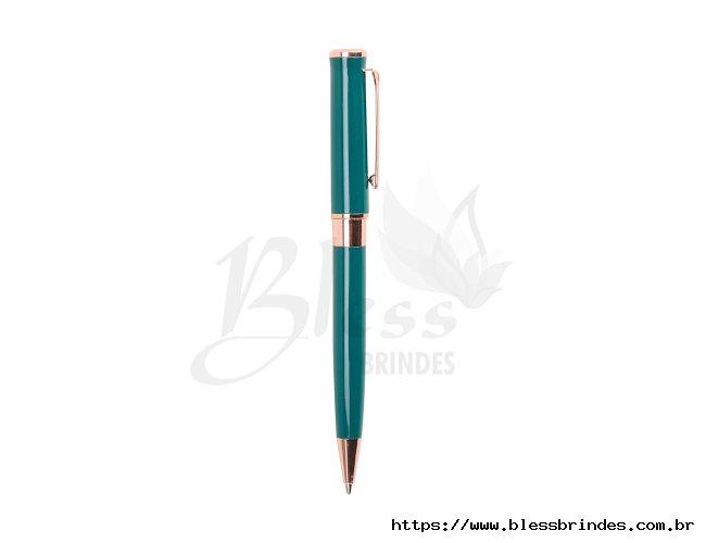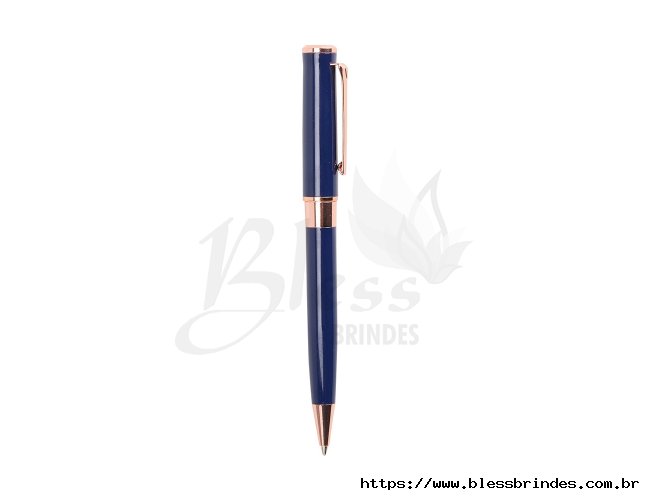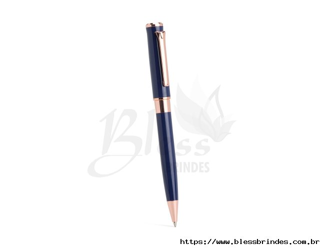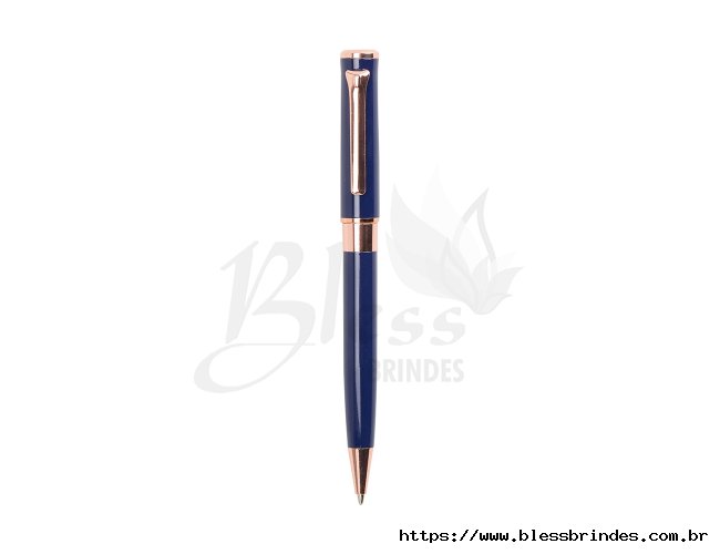 Caneta esferográfica de carga azul de 1.0mm com acionamento por rotação e construção totalmente em metal, que proporciona uma pegada confortável para uma escrita mais precisa.