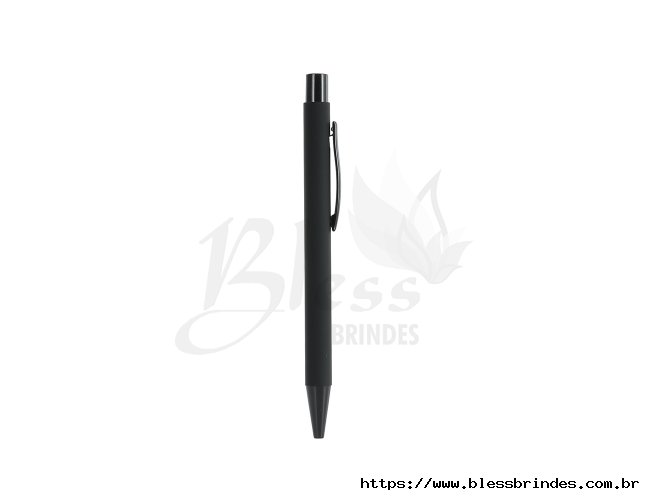 Caneta metálica com acabamento emborrachado, carga esferográfica azul 1.0mm e acionamento por clique.
