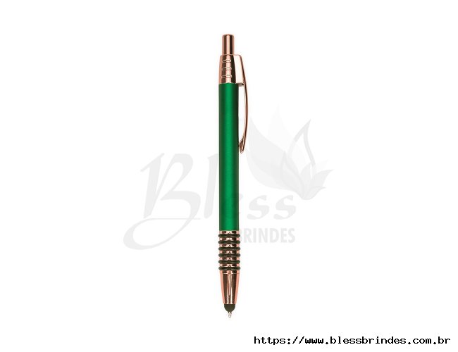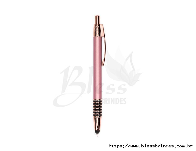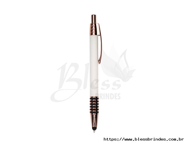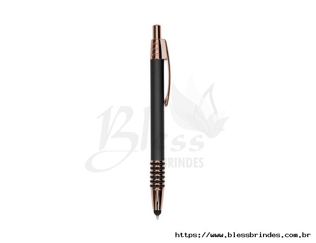 Caneta metálica com detalhes emborrachados no corpo para proporcionar mais conforto na escrita. Possui carga esferográfica azul de 1.0mm e acionamento por clique. Conta com ponteira touch para interação com dispositivos de tela sensível ao toque.