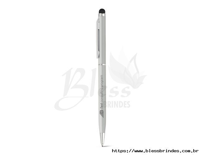 Esferográfica em alumínio com mecanismo twist, clipe e ponteira touch. ø8 x 135 mm
