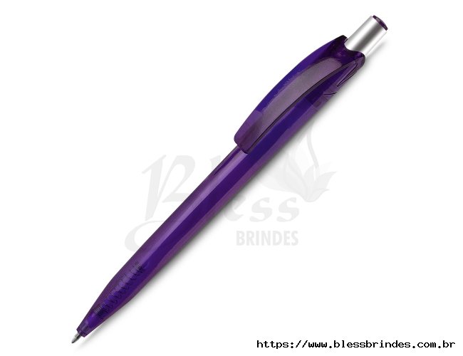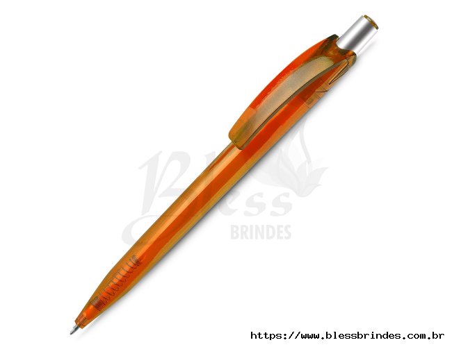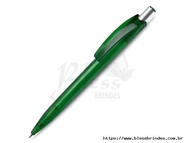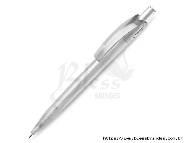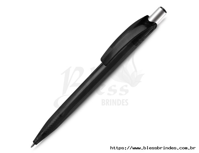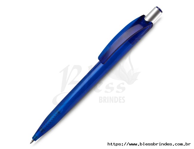 Caneta plástica com carga esferográfica azul 1.0mm e acionamento por clique.