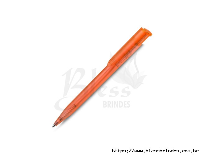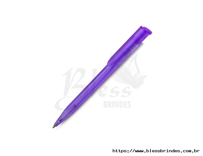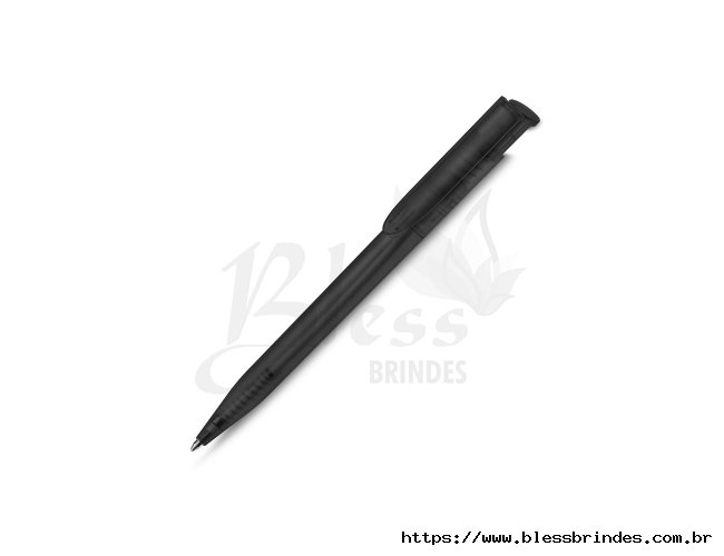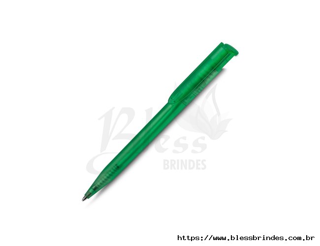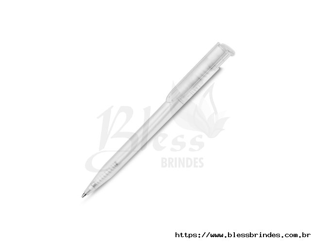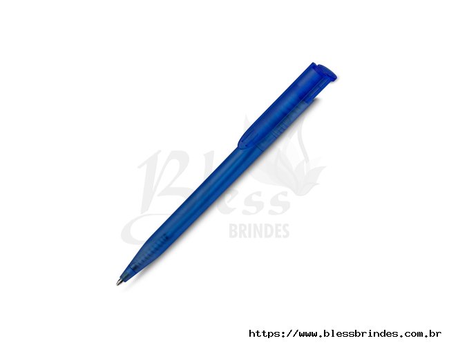 Caneta plástica com carga esferográfica azul 1.0mm e acionamento por clique.
