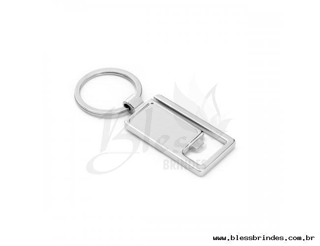 Chaveiro Metal Com abridor de garrafas e mosquetão.