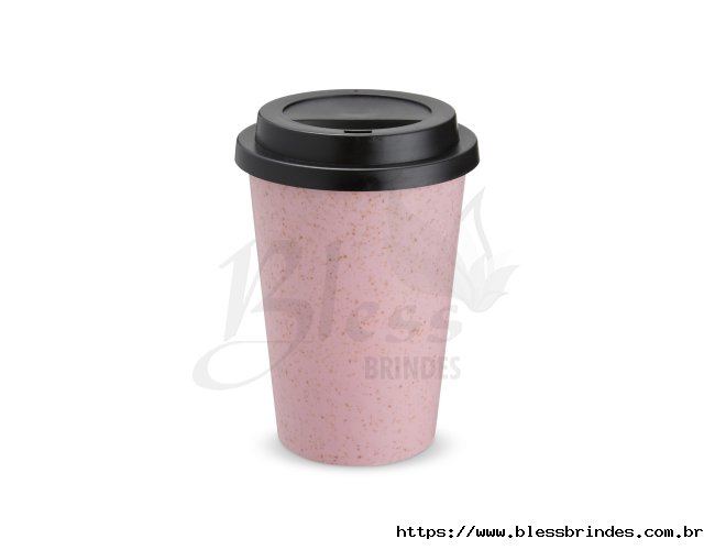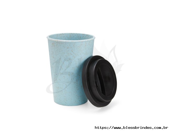 Copo fibra de arroz e polipropileno com capacidade de 450ml livre de BPA, possui tampa com bocal.