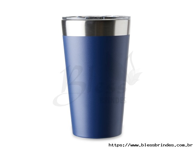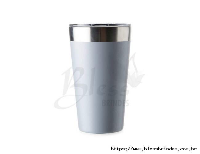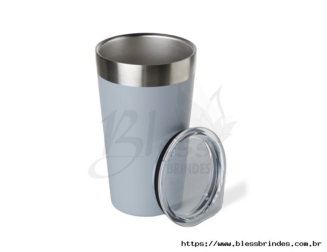 Copo térmico com capacidade de 473ml feito em inox com parede dupla, acompanha tampa acrílica de encaixe com bocal.