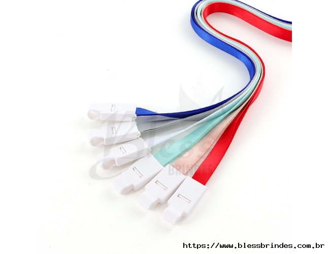Cordão de poliéster com presilha em plástico.