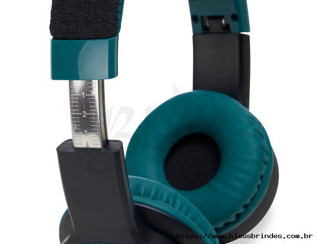 Fone de ouvido bluetooth. Possui revestimento de couro sintético com espuma interna, garantindo um ótimo isolamento do som externo, luzes LED RGB, hastes articuláveis com altura regulável, permitindo que o fone seja guardado de maneira compacta, revestimento de tecido na parte superior da hastes, microfone para atendimento de chamadas, botões Play/Pause, M (modo), + e – no corpo do fone. Executa nos modos bluetooth, Auxiliar P2, Rádio FM e Cartão TF (Micro sd). Acompanha cabo USB tipo-C.