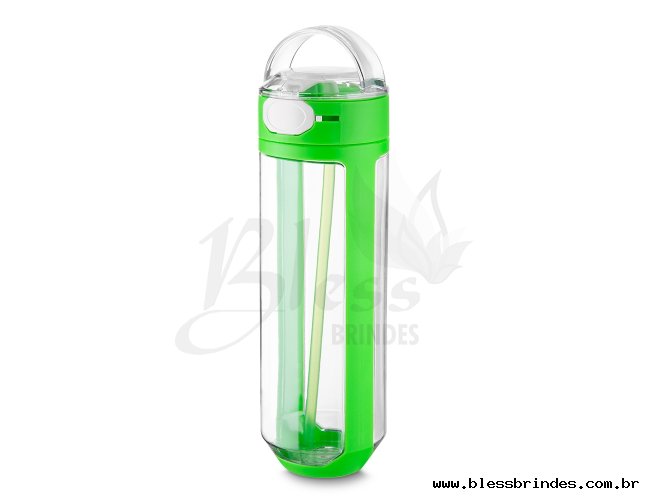 Descrição: Garrafa plástica 770ml com bico e trava de segurança. Garrafa transparente com detalhes coloridos, tampa com alça para transporte, trava de segurança, botão de acionamento, bico emborracho e canudo interno.
