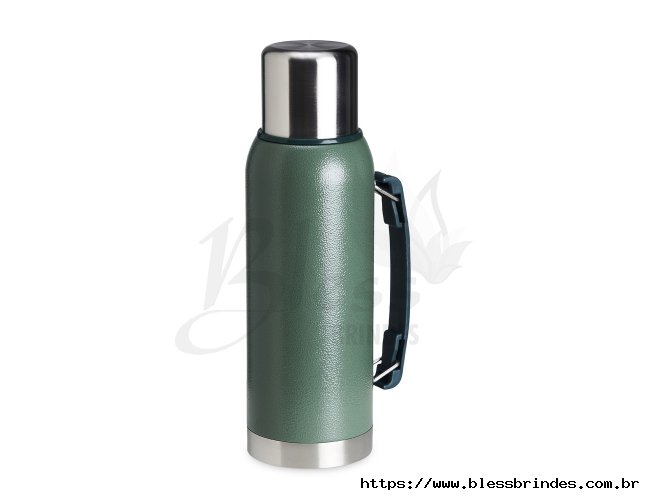 Garrafa térmica de inox livre de BPA com capacidade de 1 litro. Contém alça para transporte.