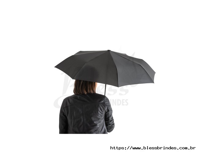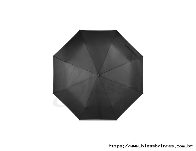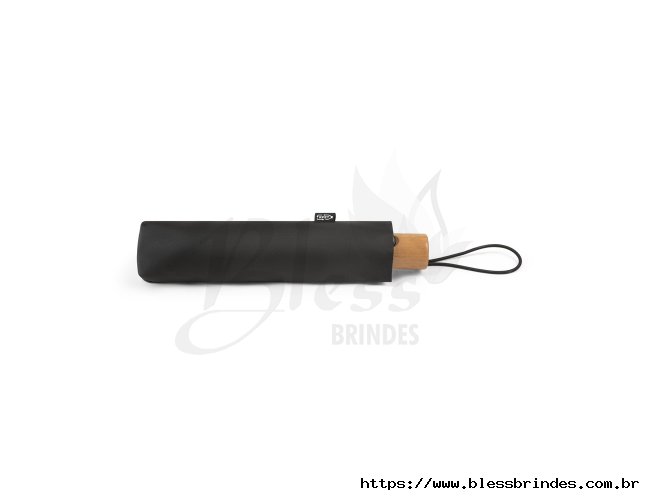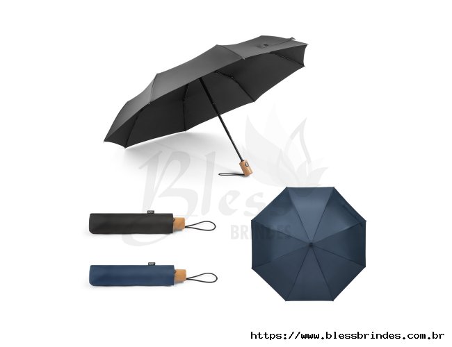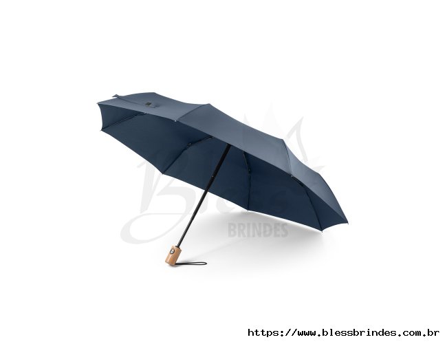 Guarda-chuva em 100% poliéster reciclado pongee 190T (100% rPET), com varetas em fibra de vidro e pega em madeira. Guarda-chuva dobrável em 3 seções, com abertura e fecho automático e à prova de vento. Fornecido em bolsa. Guarda-Chuva: ø990 x 285 mm | Bolsa: ø55 x 240 mm
