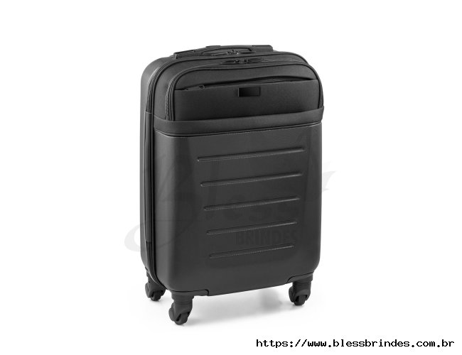 Mala de viagem executivo em ABS e 600D com interior forrado. Fecho de segurança com senha na lateral, 4 rodas giratórias, pega extensível em alumínio (altura da pega estendida até 460 mm). Compartimento almofadado para notebook até 15.6" e 2 bolsos frontais. Placa metálica removível com imã para fácil gravação. Capacidade até 33 L e peso de 1,67Kg. 320 x 540 x 210 mm