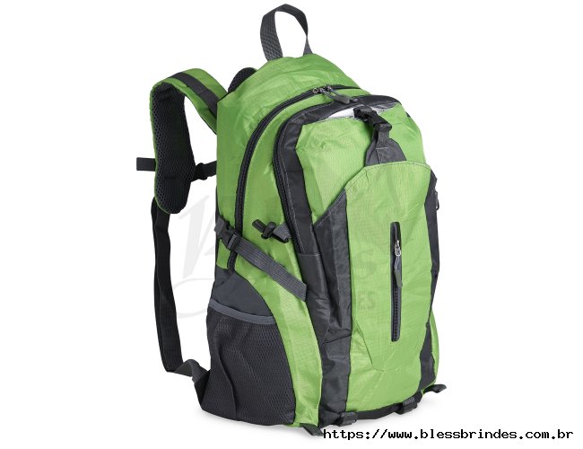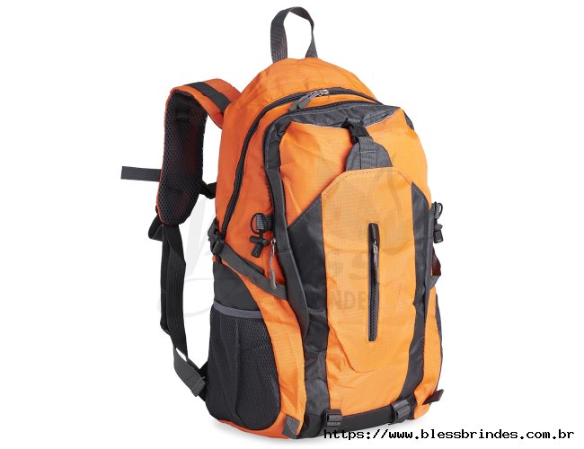 Mochila esportiva de 28 litros em nylon resistente à água com quatro compartimentos, sendo o principal com bolso para notebook 15’6 polegadas. Contém bolsos laterais em malha, alças e área costada com revestimento espumado e alças de compressão.