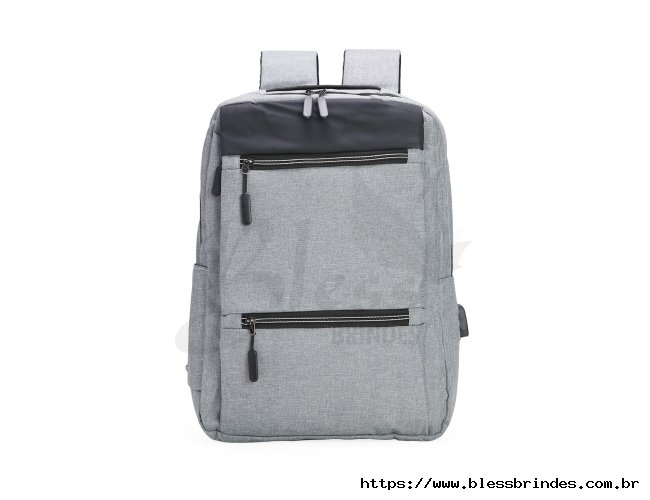 Mochila de nylon 20 litros com detalhe em couro sintético e quatro compartimentos, sendo o principal com bolso para notebook 156. Com divisórias internas para acessórios, a mochila possui bolso lateral, suporte externo USB e alça para encaixe em malas de viagem.