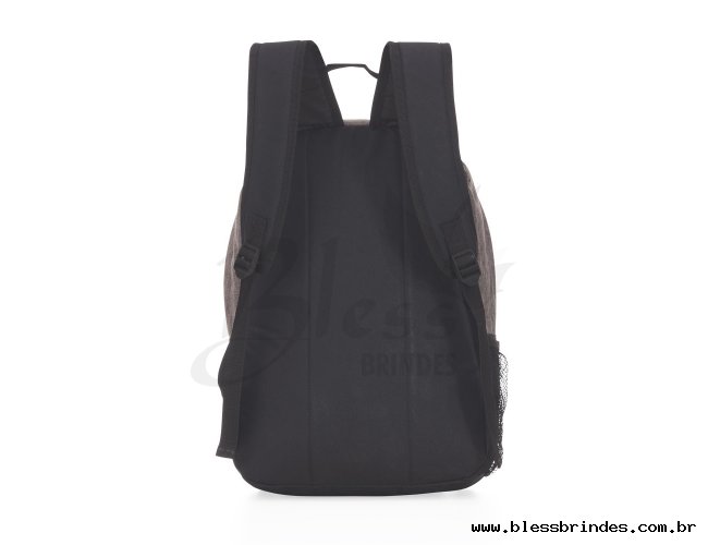 Descrição: Mochila de poliéster com compartimento principal superior e compartimento frontal com abertura lateral. Contém um bolso de nylon na lateral, alça de mão nylon e alças para costa ajustáveis.