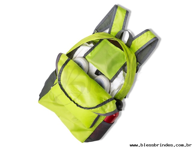Descrição: Mochila dobrável de 25 litros confeccionada em nylon impermeável. Compacta e com abertura prática, possui compartimento principal com pequeno bolso interno, bolsos laterais em malha e bolso frontal – compartimento responsável por acomodar a mochila. Para armazenar a mochila no compartimento basta virar o bolso frontal do avesso e dobrar o tecido para melhor acomodação do material. O modo compacto possui uma alça em nylon para transporte, a mochila dispõe de alça de mão em nylon e alças para costa ajustáveis com revestimento espumado.