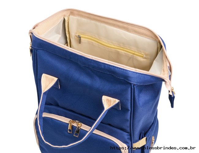 Mochila funcional de 19 litros em tecido oxford resistente à água. Possui três compartimentos distintos para uma organização eficiente. O compartimento principal conta com uma armação metálica que proporciona abertura fácil e manuseio prático, além de seis bolsos internos para organização adicional, sendo um deles em material plástico para itens molhados. Conta também com um acesso nas costas da mochilha para pegar itens que estajam no fundo com facilidade. No compartimento frontal, encontram-se três bolsos térmicos ideais para itens sensíveis à temperatura e um bolso de tela. E o terceiro compartimento sendo nas costas. A mochila também dispõe de dois bolsos laterais e duas alças de mão com suporte para juntura, proporcionando praticidade ao transporte, alça para engate em malas de viagem e duas alças para pendurar a bolsa onde desejar. As alças para as costas são ajustáveis, garantindo conforto personalizado durante o uso.