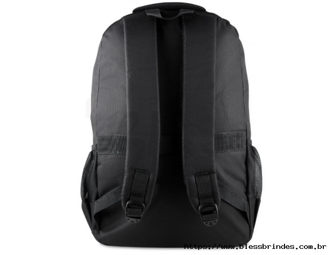 Mochila confeccionada em tecido externo de poliéster 300D e tecido interno de poliéster 190D, com capacidade total de 23 litros. Possui três bolsos frontais com zíper, compartimento principal com fechamento em zíper, dois bolsos laterais e engate para mala de viagem. Conta ainda com compartimento interno próprio para notebooks de até 15,6 polegadas.