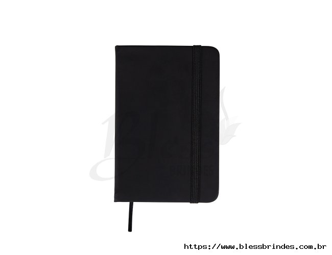 Caderneta tipo moleskine emborrachado com marcador de página em cetim e fita elástica para fechar. Contém aproximadamente 80 folhas amareladas com pauta.