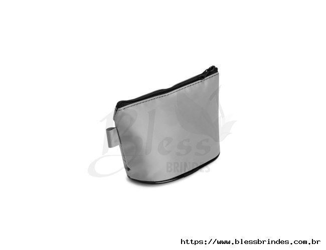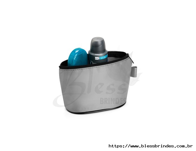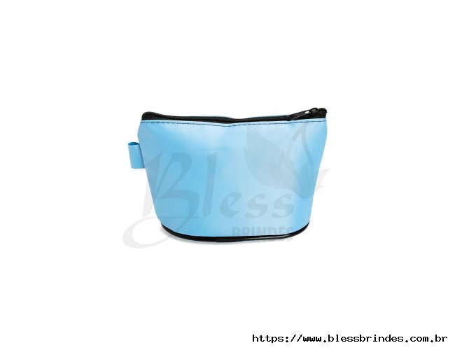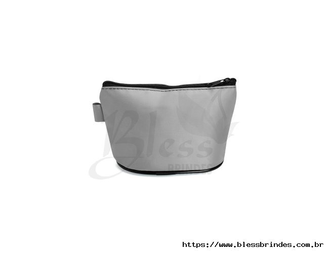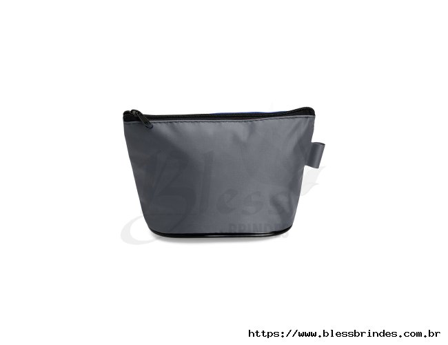 Nécessaire confeccionado em nylon impermeável, fechamento em zíper e alça pequena para acesso de chaveiro ou gancho.