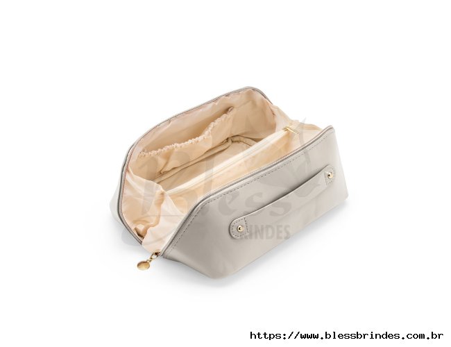 Feita em poliuretano (PU) impermeável, conta com amplo espaço interno e abertura em 180 graus, similar a de uma concha. Este nécessaire é uma opção versátil para guardar desde cosméticos até artigos para cuidados pessoais, medicamentos e muito mais através de um dos bolsos laterais ou dentro do compartimento central com fechamento em zíper. Além disso, possui uma alça resistente para facilitar o transporte do nécessaire.