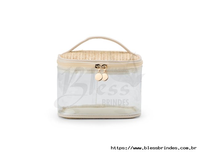 Delicadeza e charme natural são as características marcantes da nossa nécessaire. Produzida em PVC com detalhes em palha sintética, seu design permite uma visualização prática dos itens, mantendo-os sempre visíveis e ao alcance.