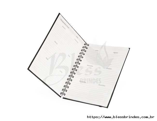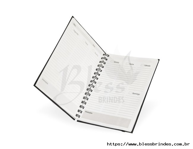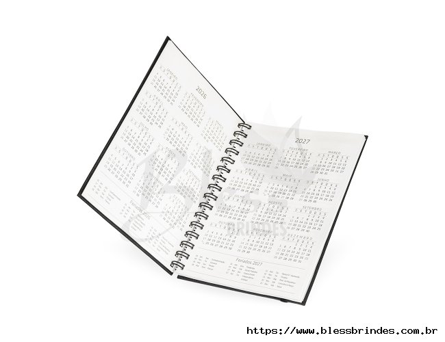 Planner com capa dura em cromato, marca-páginas em fita de cetim e elástico para fechamento. Apresenta páginas dedicadas a dados pessoais, calendários de 2025 a 2027 e espaços para anotações diárias e semanais durante todo o ano.