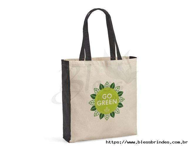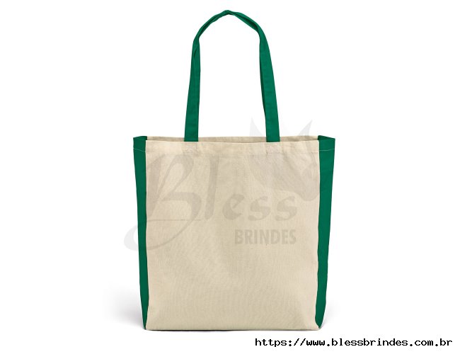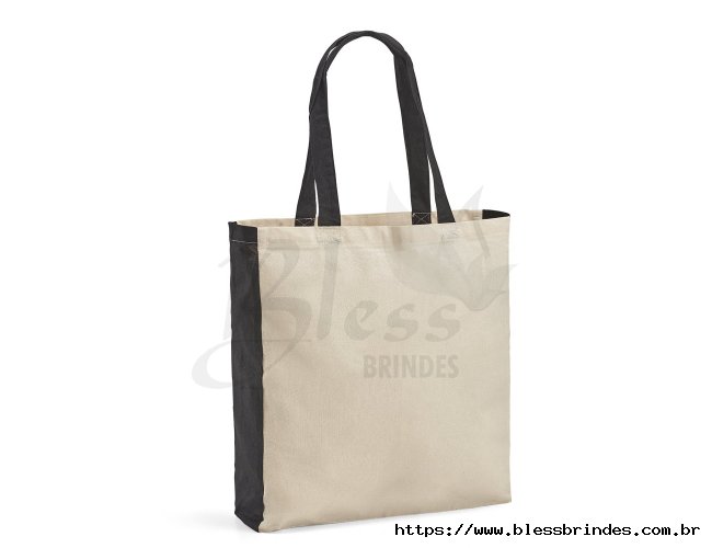 Sacola 100% algodão (140 g/m²) com alças de 65 cm. 370 x 410 x 100 mm