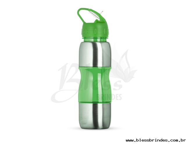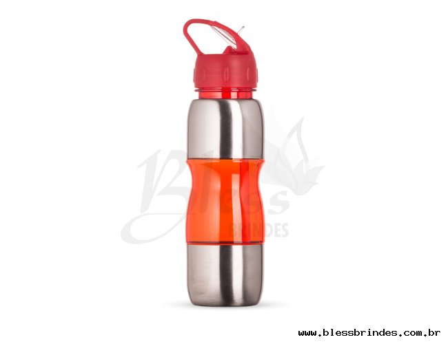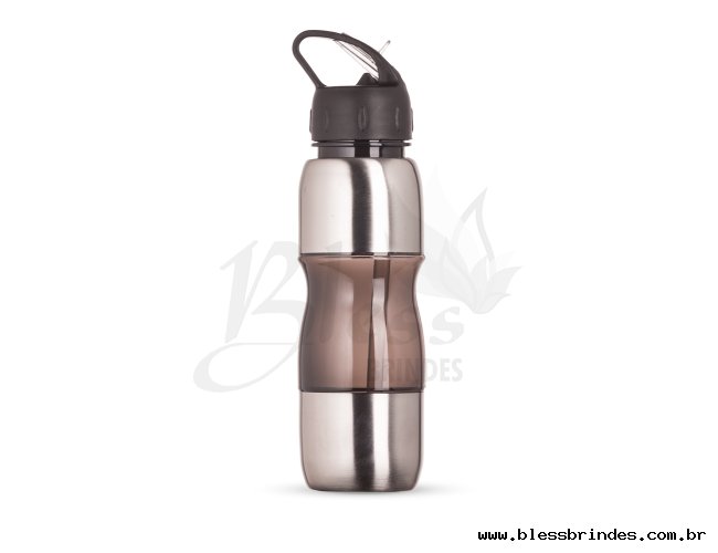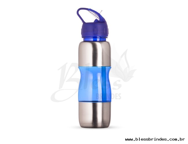 Squeeze de alumínio 600ml com alça plástica e bico de canudo.