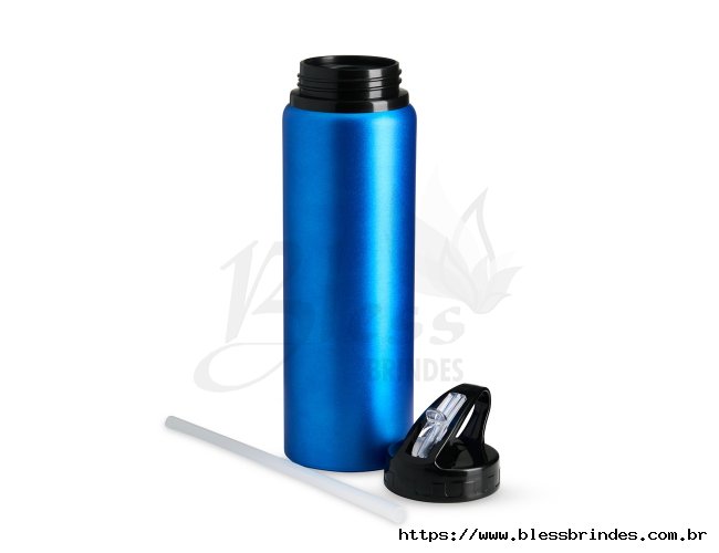 Squeeze de alumínio com capacidade de 800ml, tampa plástica com bico de canudo.