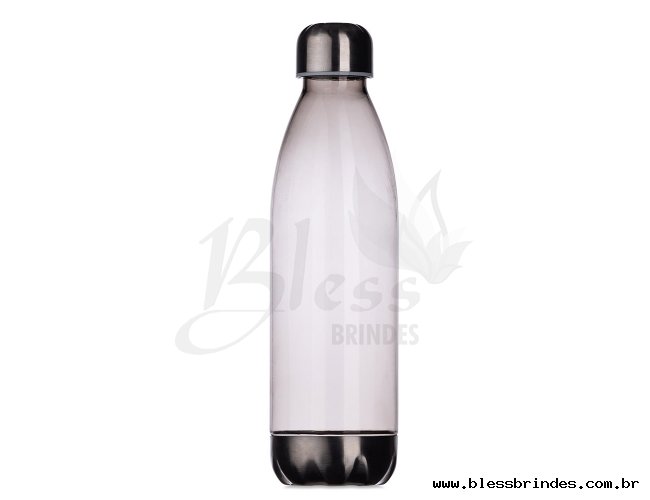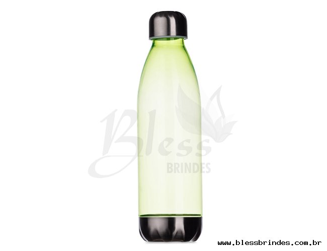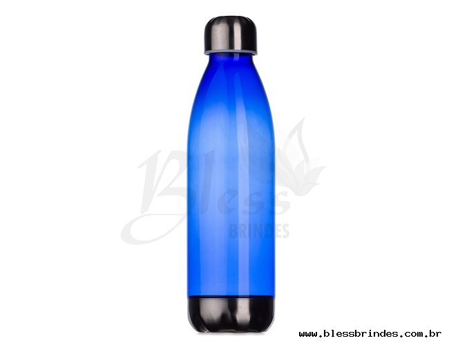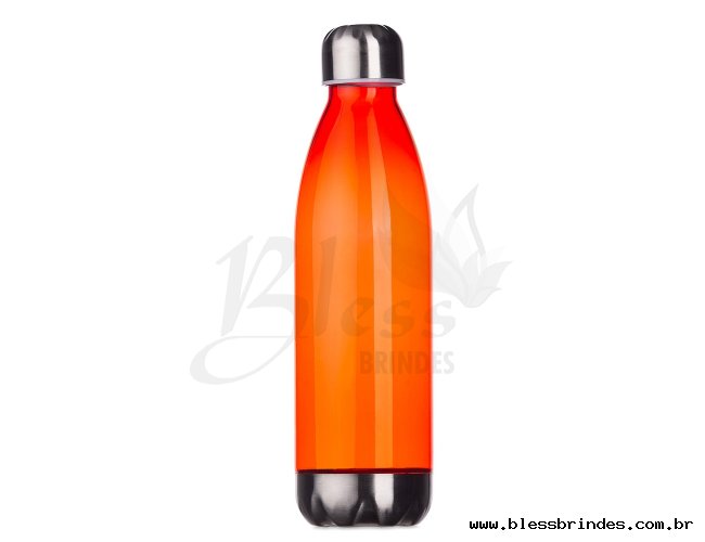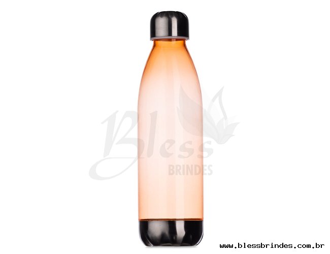 Squeeze plástico 700ml formato garrafa. Corpo transparente colorido, possui tampa e base em alumínio.