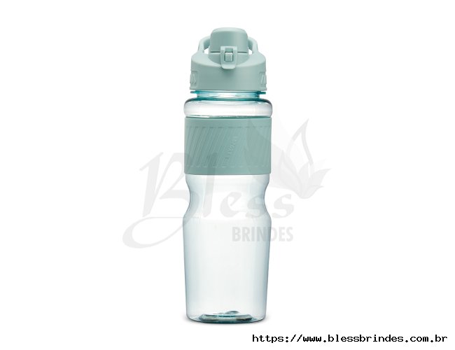Squeeze plástico 730ml com luva emborrachada, alça para transporte e tampa de proteção com trava para o bocal.