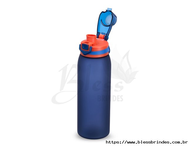 Squeeze plástico com capacidade de 900ml. Possui tampa rosqueável com tampa protetora para bocal, trava de segurança com botão de acionamento e alça para transporte. Pintura fosca.